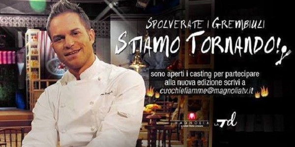 Rieccolo lo show-chef della tv italiana alle prese con la nuova edizione di "CUOCHI E FIAMME" (La7d ore 20.05).