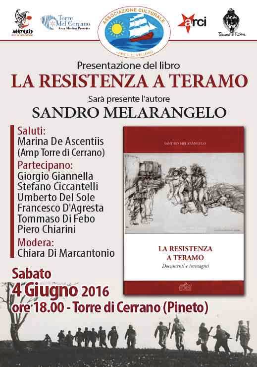 Interessante appuntamento quello che si terrà a Pineto presso la Torre di Cerrano, dove lo scrittore Sandro Melarangelo presenterà il suo libro "La resistenza a Teramo".